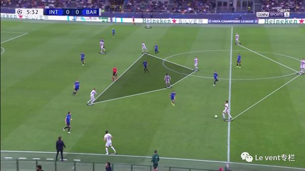 巴萨在欧冠对国米的比赛中使用了3-4-3平行中场的布置,它能够创造出登贝莱在边路一对一的机会(尽管缺少在终结端的转化),但是没有让对手出现人数优势,拉菲尼亚和加维的加入使得两个边中卫无法牵引出去(盯防登贝莱)。有时佩德里和布斯克茨会阻挡对方的球路(巴萨经常来到前场后会回传给他们),3-1-6可能会更有效一些。巴萨在比赛中主打右路,但是也许更多使用左边后卫会给国米带来更大的威胁。