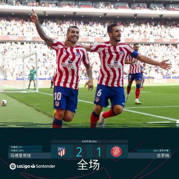 马竞本轮在西维塔斯大都会球场迎来与吉罗纳的较量。开场5分钟,格列兹曼助攻门前的科雷亚得分,1-0马竞取得领先。38分钟,库尼亚禁区中路打门被扑。上半场马竞一球领先。易边再战,48分钟科雷亚禁区左路破门梅开二度,2-0。66分钟,里克尔梅远射破门为吉罗纳扳回一球。79分钟,莫拉塔的头球稍稍高出门楣。最终凭借科雷亚的两粒进球,马竞2-1击败吉罗纳。