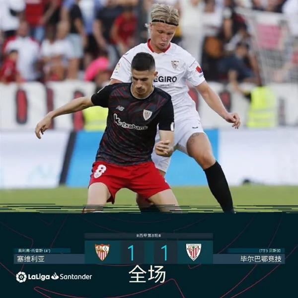 新帅桑保利上任后塞维利亚迎来劲敌毕尔巴鄂竞技。开场4分钟塞维利亚便由奥利弗-托雷斯门前近距离取得进球,1-0。24分钟,贝伦格尔左路打门被扑。51分钟,穆尼亚因头球稍偏。60分钟,尼科-威廉姆斯禁区内射门偏出。73分钟,贝斯加远射破门扳平比分。94分钟,埃雷拉犯规被红牌罚下。最终双方1-1握手言和。