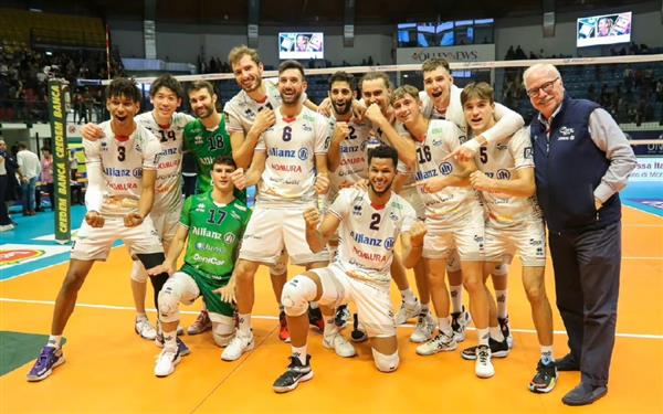 米兰客场在0-2落后的情况下上演大逆转,3-2(23-25/23-25/25-20/25-23/15-11)击败蒙扎,mvp莫尔加雷约18分、帕特里和石川祐希各15分、埃巴迪普尔14分,格罗泽28分、达维斯基巴20分、马尔14分、贝雷塔10分。