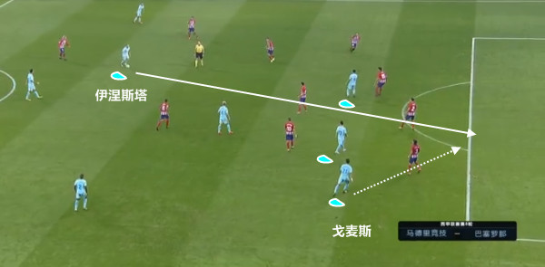 伊涅斯塔的直塞球,戈麦斯的前插险些拿到单刀机会