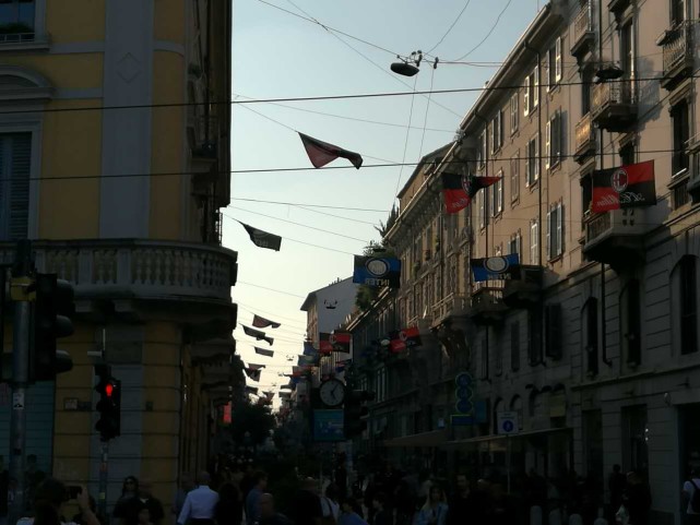 如今,穿梭于米兰的街头巷尾,会时不时地与中国元素相遇。出租车司机看到从中国而来的旅客会脱口而出“suning!”“inter!”,体育场外的球迷会以“hello china!”热情地打招呼,现学过中文的餐馆老板会在临走时说“加油国米”。整整一条唐人街的二楼住户们,自发用绳子勾连起对面的阳台,为的是挂上俱乐部队旗,蓝黑与红黑,交相辉映。一位华人老板感慨,两家久负盛名的俱乐部如今双双属于中国人,让他们骄傲,找寻到了归属感。