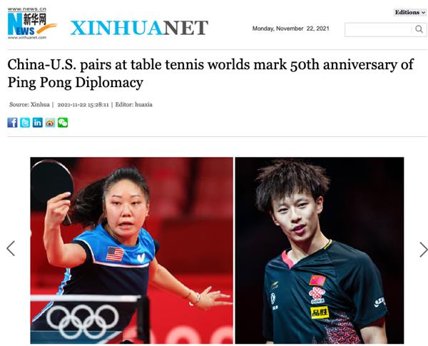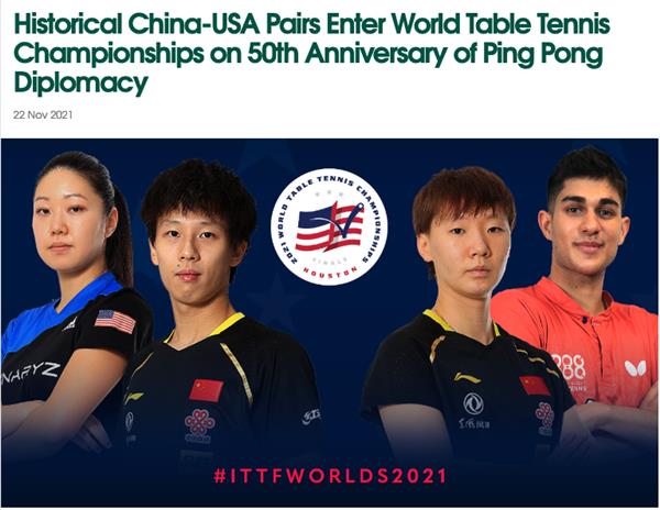 2021 年国际乒乓球锦标赛将于 11 月 23 日至 29 日在美国休斯敦举办,而本届世乒赛将再次见证体育共同的力气,以及乒乓球是怎么创造对话、促进相互理解的。为了留念中美 “乒乓外交” 50 周年,之前我国乒协联合美国乒协向国际乒联提出中美跨国配对参加休斯敦世乒赛混双竞赛的主张,现在这一主张得到国际乒联的支持,林高远(我国)/张安(美国),卡纳克(美国)/王曼昱(我国)两对中美跨国配对的混双球员,将在 24 日清晨开端的混双竞赛中冷艳露脸。