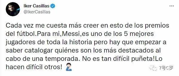 圣卡西也在个人社交媒体质疑了金球奖--我来说越来越难相信足球奖项了。我认为梅西是历史前五的球员,但你需要知道在赛季结束时怎样列出谁是表现最突出的球员,没这么难吧!别人把这个问题搞复杂了!