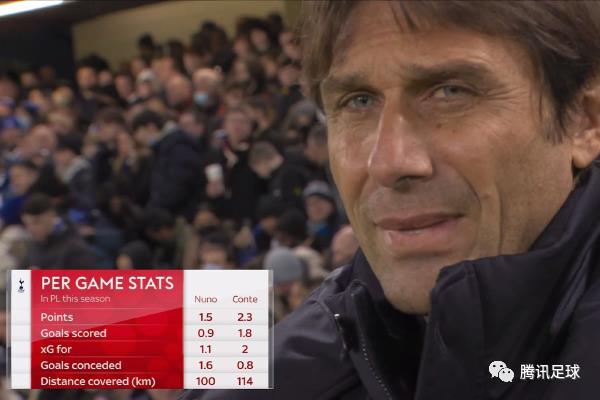 本场英超联赛之前,孔蒂接手的前8场英超,场均进球和预期进球都翻倍于前任执教时期,实际丢球数只有努诺的一半。