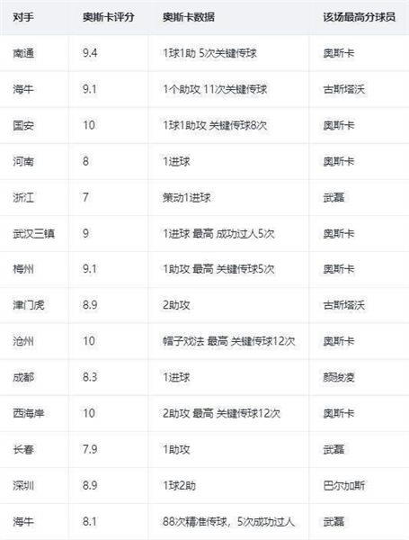奥斯卡加盟中超花了6000万欧元创纪录的转会费,年薪高达1.6亿元人民币,他的价值在中超得到了充分展现。自2017年奥斯卡在中国踢球以来,它帮助海港获得了两个中超冠军和一个超级杯冠军,并带领海港进入了一个亚冠四强和一个亚冠八强。奥斯卡在中超获得了四次助攻。本赛季至今已有11球14次助攻,第五次获得这一荣誉的概率很大。